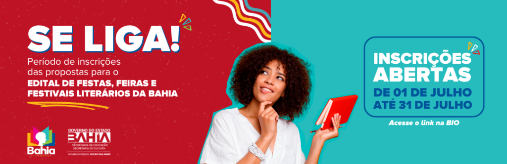 Entre os dias 01 a 31 de julho estarão abertas as inscrições para o edital de Festas, Feiras e Festivais Literários, que irá selecionar 81 propostas para concessão de apoio financeiro visando à realização de eventos literários nos 27 territórios de identidade da Bahia. As inscrições podem ser realizadas através do site da Fundação Pedro Calmon.