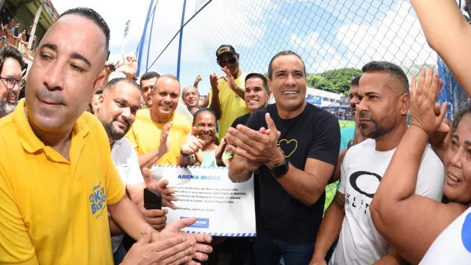 Bruno Reis falou sobre a importância de criar campos com boa estrutura nos mais diversos bairros: “Nós modernizamos a Arena Biguá para vocês, para a comunidade usufruir dela. A gente sabe que uma arena como essa tem a capacidade de dar o início a uma carreira. Quantos craques saíram de comunidades para se destacarem no Brasil e no mundo? Eles servem de inspiração para essa garotada, que pode ter o seu presente e o seu futuro transformados pelo esporte”, afirmou.