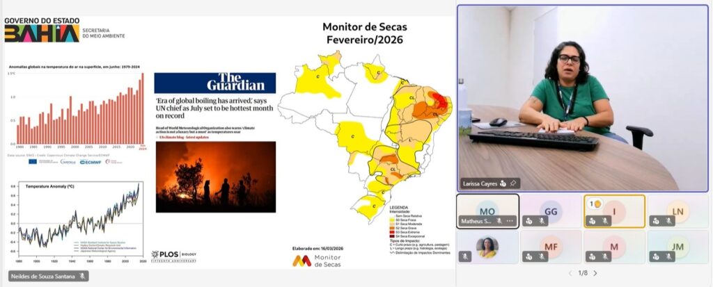 Em celebração ao Dia Mundial da Água, técnicos de consórcios públicos municipais que integram o Programa de Gestão Ambiental Compartilhada (GAC) participaram, na manhã desta sexta-feira (20), de um encontro virtual promovido pela Secretaria do Meio Ambiente da Bahia (Sema). A iniciativa teve como foco o fortalecimento do papel dos municípios na proteção dos recursos hídricos e estimulou o intercâmbio de experiências e estratégias voltadas à gestão sustentável da água no estado.