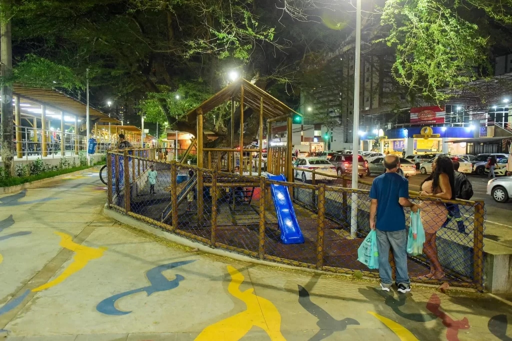 “É uma praça 100% familiar. O nosso carro-chefe aqui é a venda de produtos alimentícios. Aqui temos comida regional nordestina, comida oriental, comida árabe, pastéis, cachorro-quente. A variedade é grande. Aqui frequenta crianças, adultos, idosos. A Prefeitura pensou realmente em tudo para que o espaço ficasse agradável, não só para os frequentadores dos quiosques, mas para as pessoas que vêm passear com o seu pet, com a sua criança. Ficou um espaço muito agradável”, acrescenta Carmo.