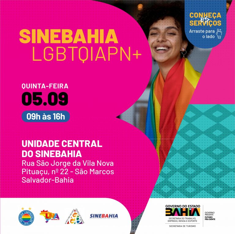 A Rede SineBahia realiza nesta quinta-feira (5), a ação SineBahia LGBTQIAPN+, nesta quinta-feira (5), a partir das 9h, na Unidade Central Terminal Pituaçu, com a oferta de 100 vagas de emprego (com e sem experiência) para área de atendimento (operador de telemarketing, atendente de loja, garçom e atendente de lanchonete). A iniciativa integra a 8ª Semana da Diversidade e tem como objetivo promover a inserção da comunidade no mercado de trabalho.